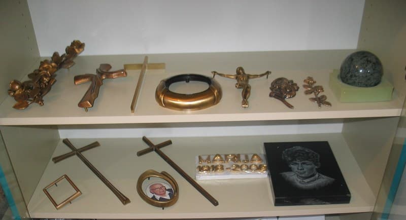 • bronasti nagrobni dodatki (križi, motivi, reliefi, rože, figure)